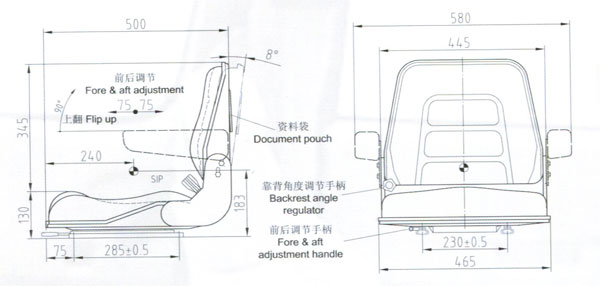 座椅為叉車及其它工業(yè)車輛設(shè)計的經(jīng)濟(jì)型駕駛員座椅。它沒有懸浮裝置。但其座背、靠背均采用真空發(fā)泡一次成型技術(shù),便于拆換。